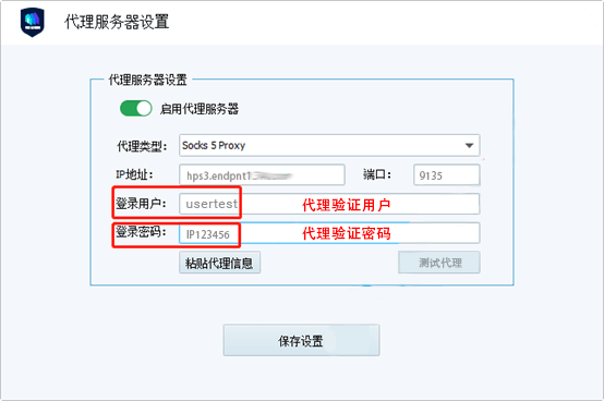 填写主机端口和代理验证信息(账号和密码)